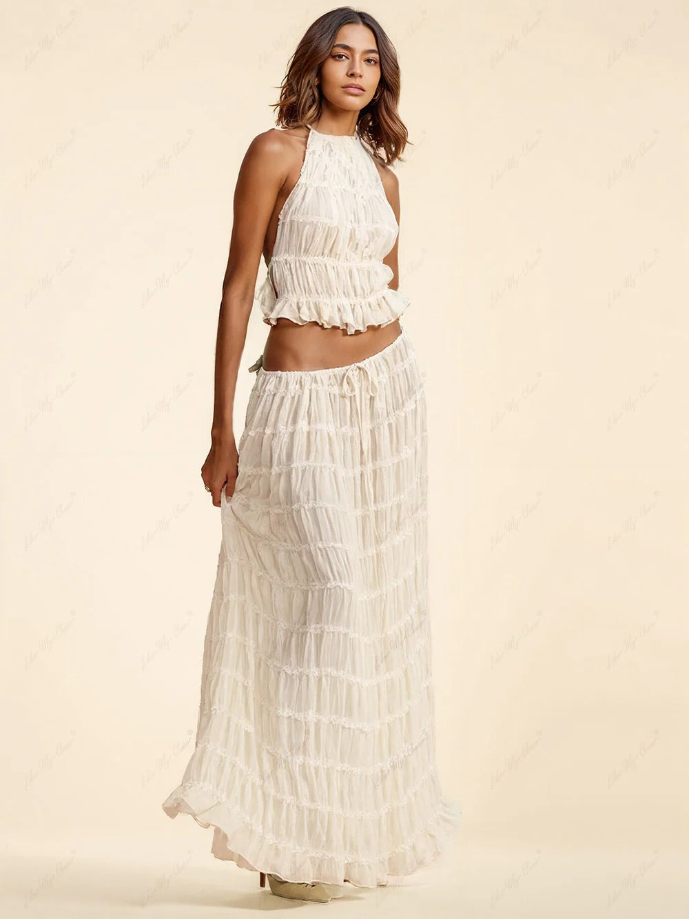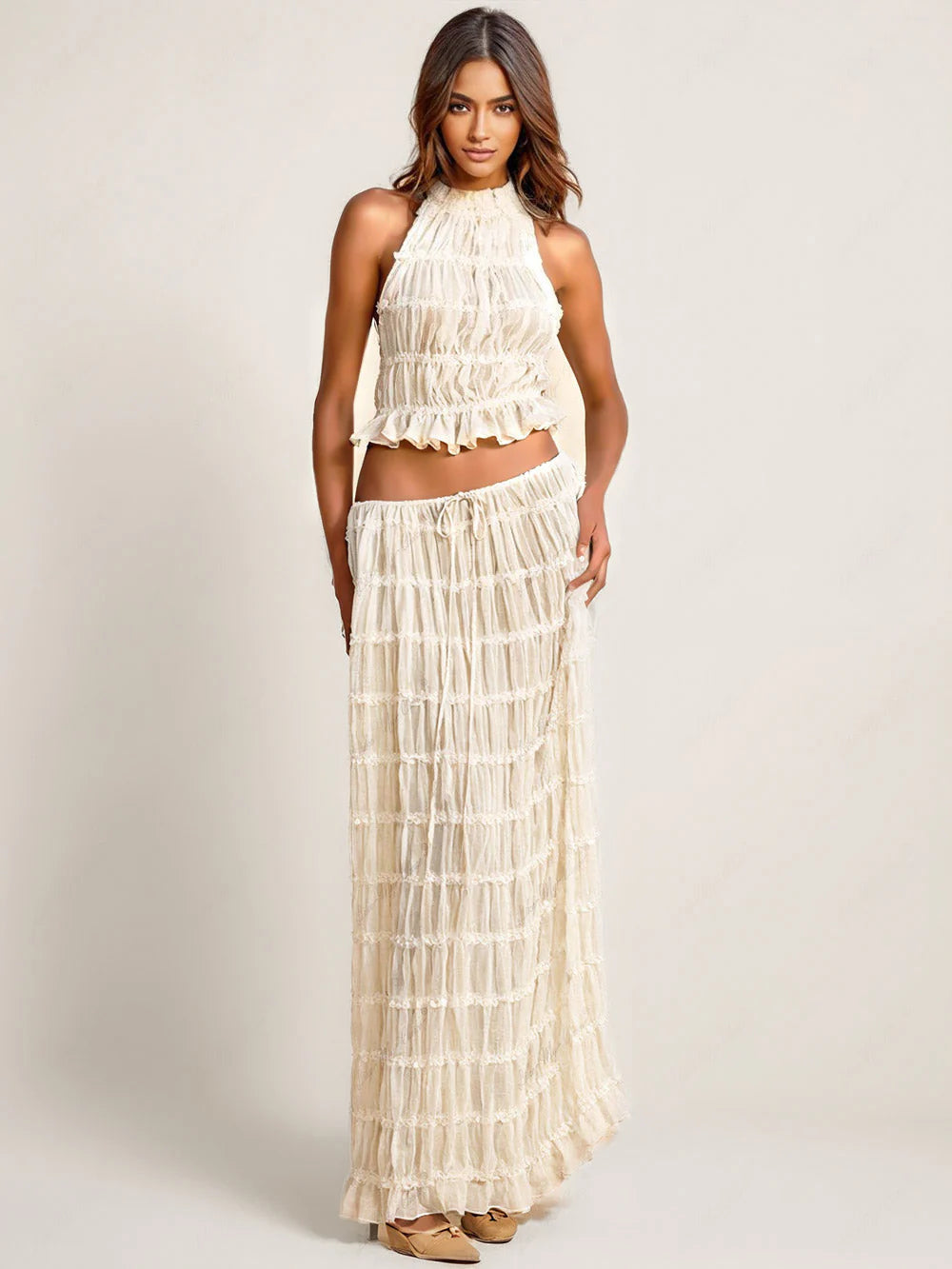 Découvrez un confort ultime sans sacrifier le style avec le set d'été Arian, comprenant un haut court chic à épaules dénudées et des détails lacés qui vous gardent au frais et en confiance.
