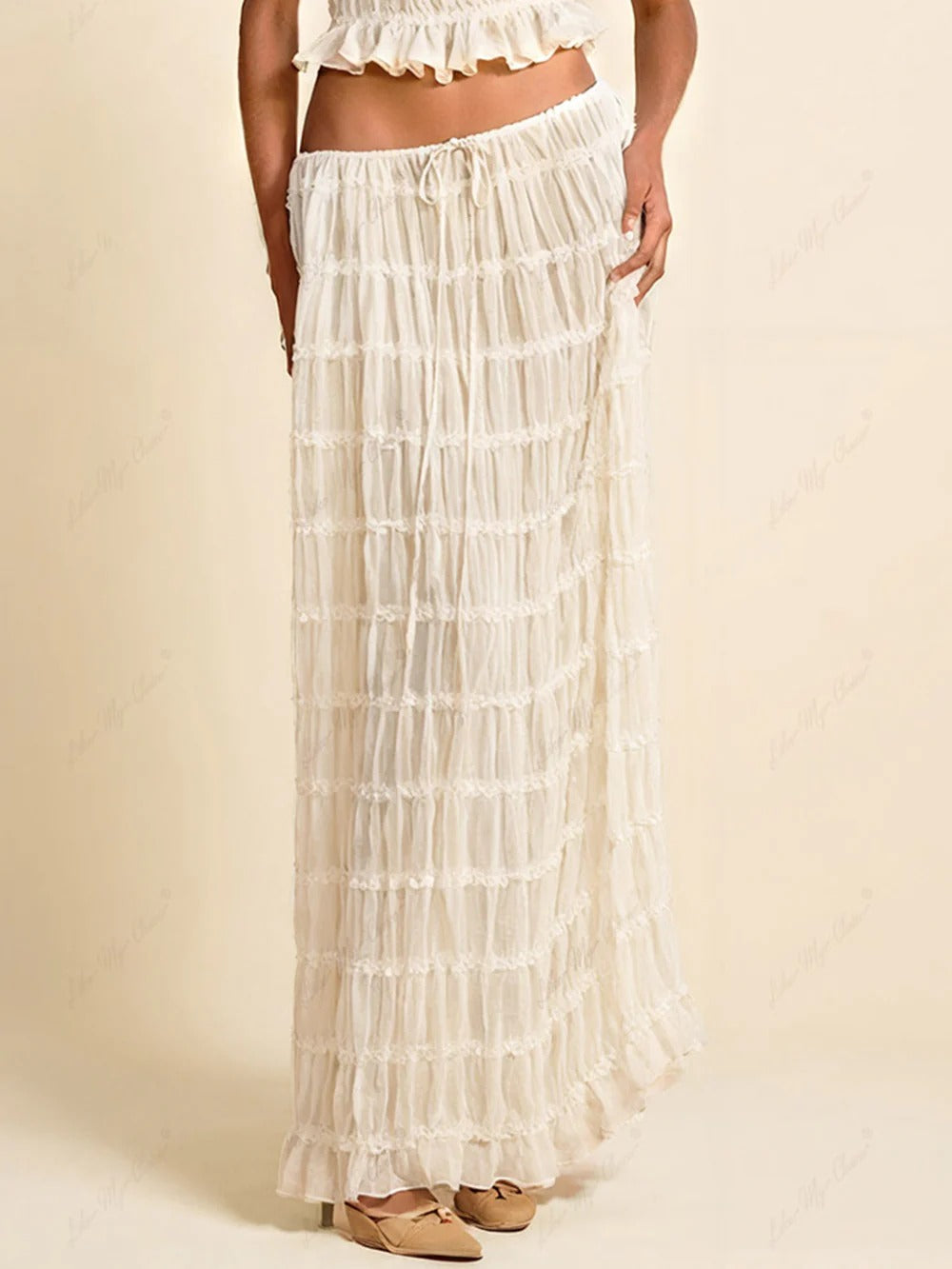 Le set d'été Arian incarne le charme bohème avec sa jupe tropicale et son haut court à épaules dénudées, parfait pour une élégance sans effort pendant la saison estivale.