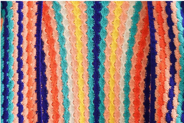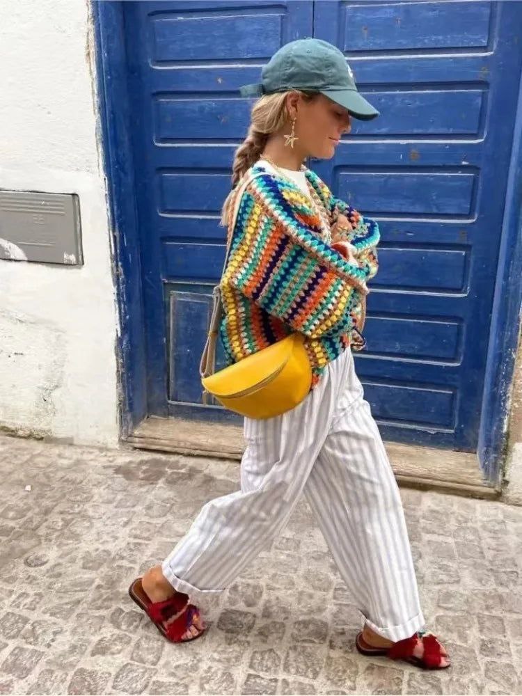 - Design Coloré : Des motifs en crochet multicolores dans une palette vivante de bleu, vert, jaune, orange et rose qui apportent une touche de fraîcheur et de dynamisme.