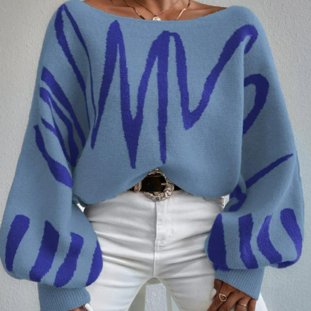Élevez votre style avec le Carina Pull, conçu pour celles qui recherchent un équilibre parfait entre tendance et praticité. Avec son motif de rayures abstraites et ses manches bouffantes distinctives, ce pull incarne une mode audacieuse et sophistiquée. Le col bateau apporte une touche d'élégance, tandis que la silhouette décontractée garantit un confort optimal pour chaque occasion.
