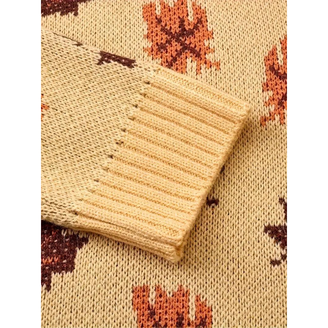Apportez une touche de nature et de charme rétro à votre garde-robe avec Dalila, un pull parfait pour la saison froide. Avec son motif de feuilles sophistiqué et sa coupe vintage, ce pull à manches longues est conçu pour vous garder au chaud tout en restant élégante.