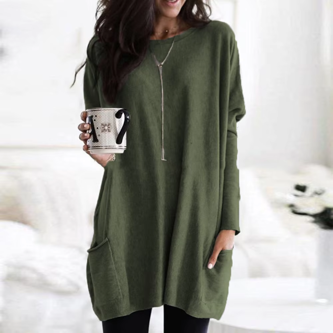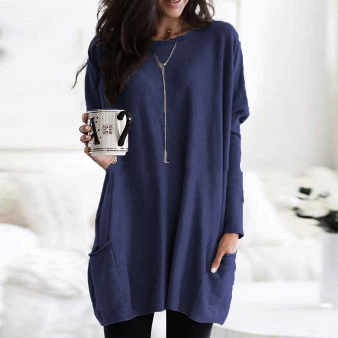 Sa coupe simple mais élégante se marie facilement avec des leggings ou des bottes, créant un look moderne et raffiné en toute simplicité.