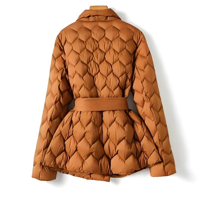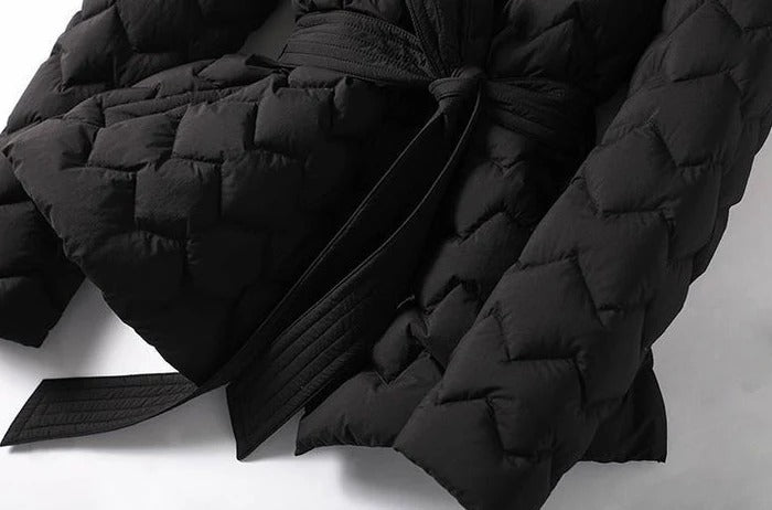 Entrez dans un pays des merveilles d'hiver avec la veste matelassée Runa, une étreinte enchanteresse de la mode glaciale.