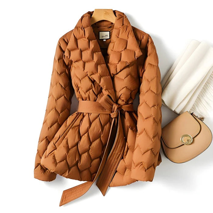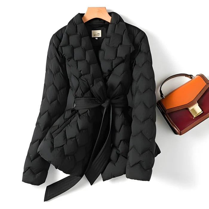 La veste matelassée Runa présente une silhouette confortable mais très féminine avec une ceinture élégante pour celles qui apprécient les petits détails. Cette ceinture non seulement accentue vos courbes, mais ajoute également une dimension chic et sophistiquée à votre garde-robe d'hiver, faisant sensation en toute saison.