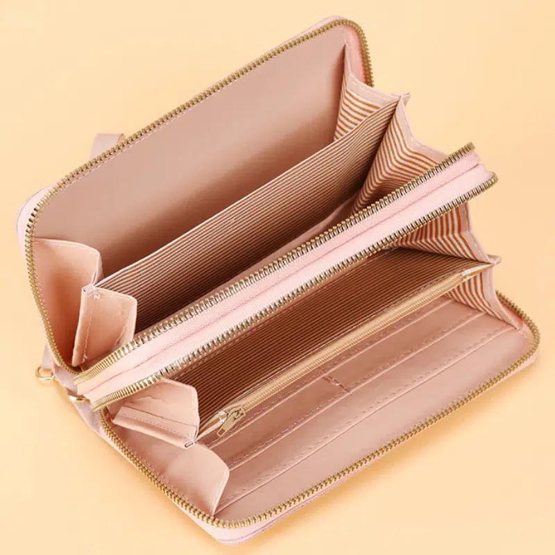 Cette grande pochette fera aussi bien office de rangement que de portefeuille. Idéal pour les sorties nocturnes pour ne pas s’encombrer avec un sac à main. Grâce à la grande capacité à l’intérieur, vous pourrez emmener tout ce dont vous avez besoin avec vous. La sangle, elle, permettra de ne jamais quitter votre portefeuille.