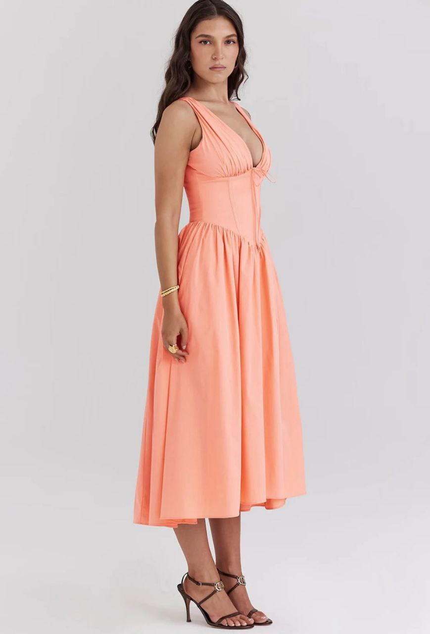 - Dîners en terrasse : Son corset élégant et sa coupe fluide en font un choix parfait pour les soirées estivales où confort et style sont essentiels.